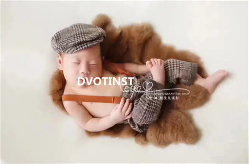 Dvotinst Newborn Photography Props Baby Boy Suspender Pants 2pcs Hats Gentleman 3pcs Set Costume Clothes Studio Shoot Photo Prop
