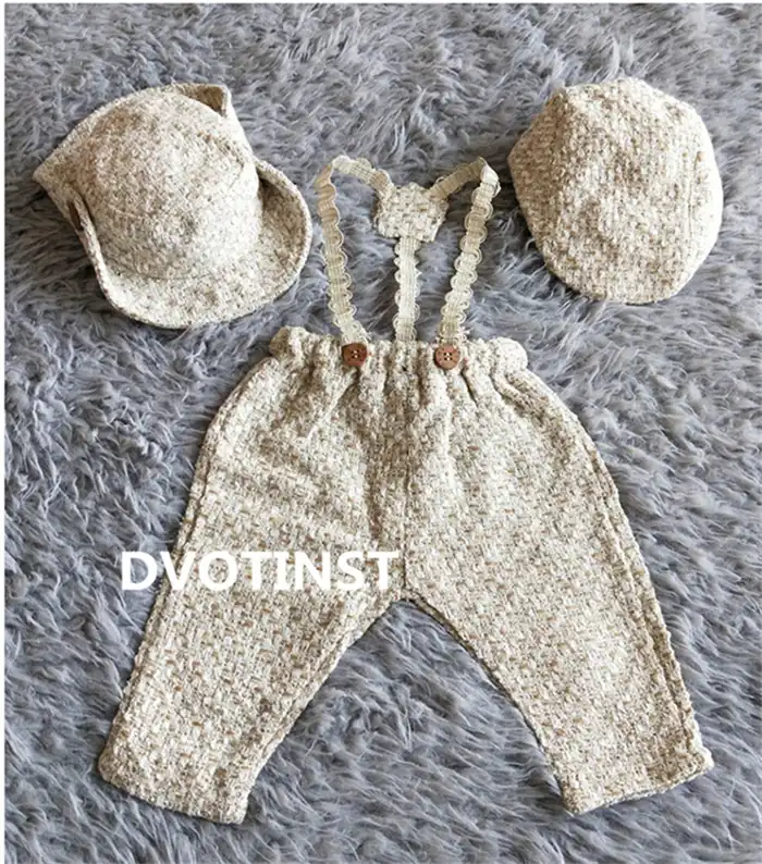 Details About Newborn Baby Boy Crochet Overalls And Cap Set Photography Prop Outfit Clothes