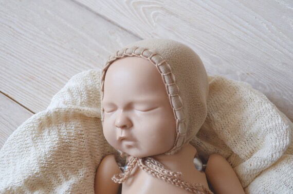 Beige Newborn Hat Baby Props Newborn Boy Props Photography Props Newborn Boy Bonnet Newborn Boy Clothes Newborn Boy Outfit Newborn Bonnet