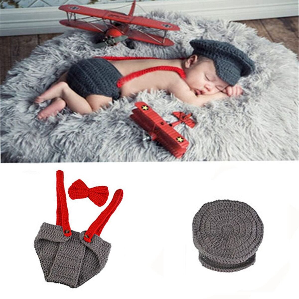 Crochet Newborn Photography Outfit Baby Boy Photo Props