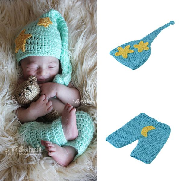 Newborn Boys Star Moon Outfits Baby Boy Clothes Knitted Hat Set Infant Photo Props Baby Photography Props Crochet Bp060 Girls Group Halloween Costumes