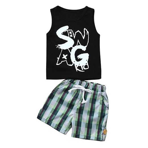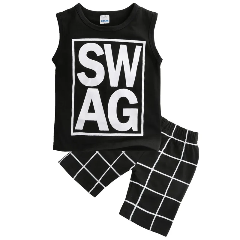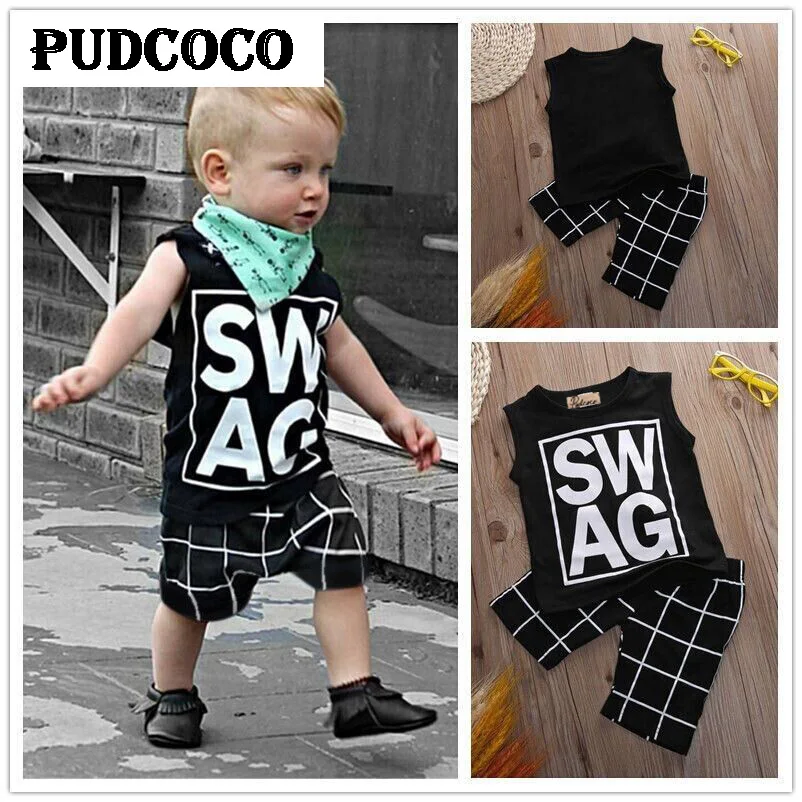 Us 3 99 46 Off 2pcs Newborn Toddler Infant Kids Baby Boy Clothes Swag Summer Sleeveless Vest T Shirt Tops Plaid Pants Handsome Clothing Set In