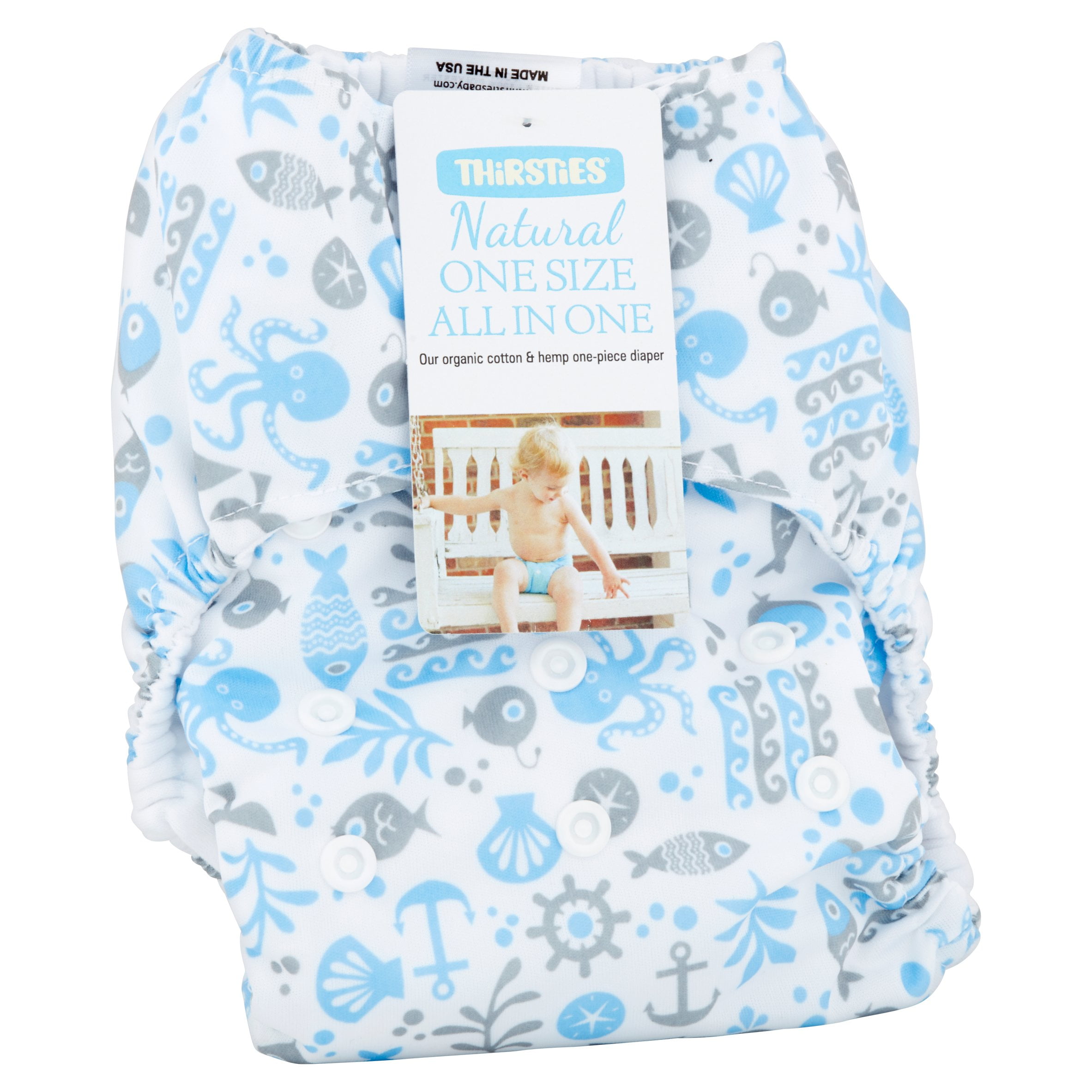Thirsties Natural Newborn All In One Ocean Life Modern Cloth