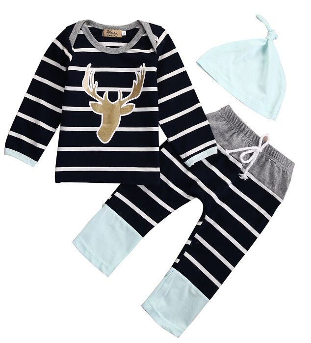 Wholesale Newborn Baby Boys Girls Long Sleeve Tops Long Pants Casual Animals Cotton Hat 3pcs Outfits Set Baby Clothes