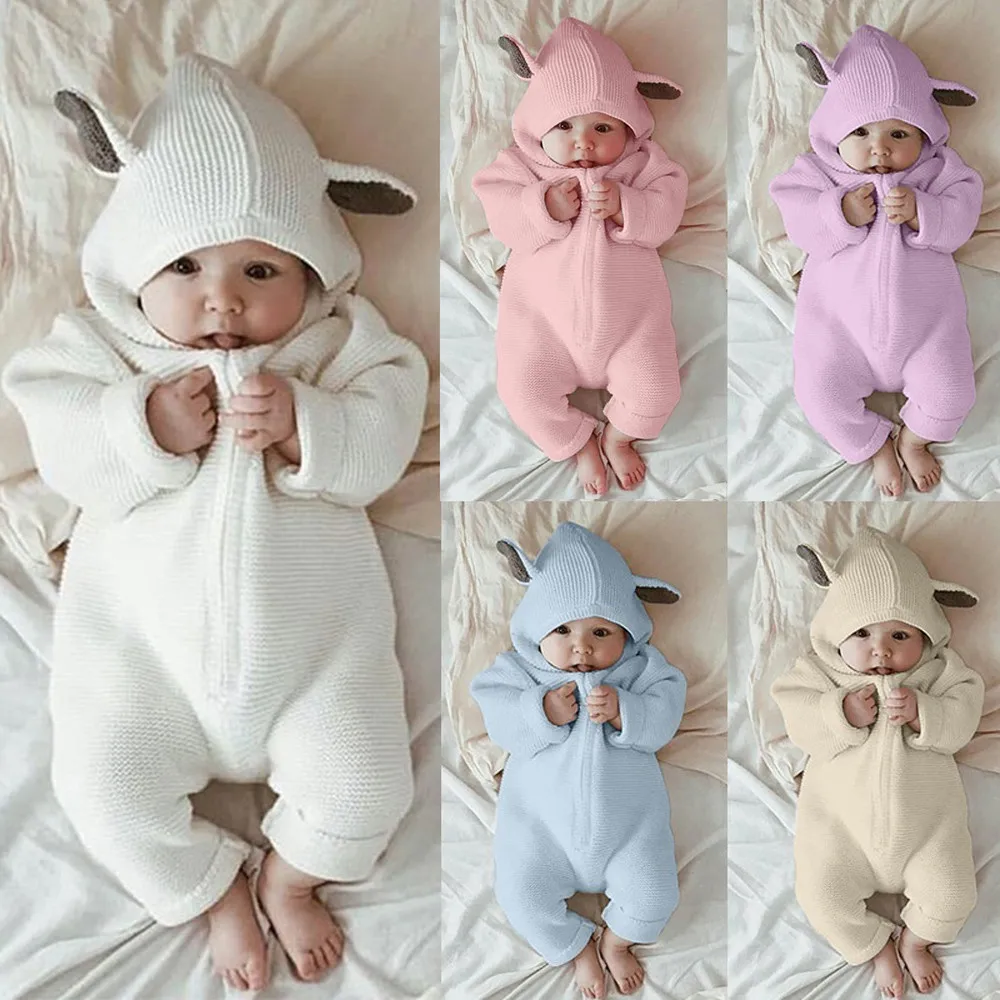 2019 Warm Infant Baby Rompers Winter Clothes Newborn Baby Boy Girl Knitted Sweater Jumpsuit Hooded Kid Toddler Outerwear And Hat From Hohobaby 34 24