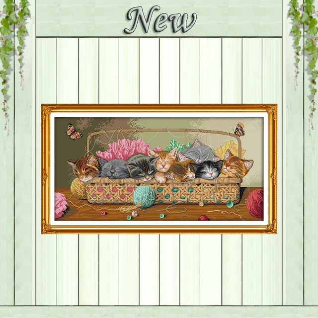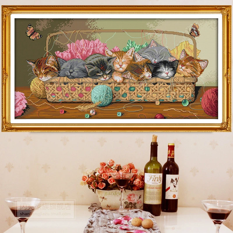 Newborn Kittens In The Basket Painting Counted Print On Canvas Dmc 11ct 14ct Kits Chinese Cross Stitch Embroidery Needlework Set In Package From Home