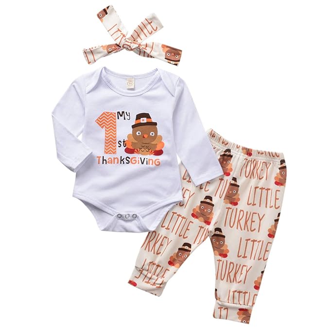 Amazon Com Infant Baby Girls Boys My 1st Thanksgiving 3pcs