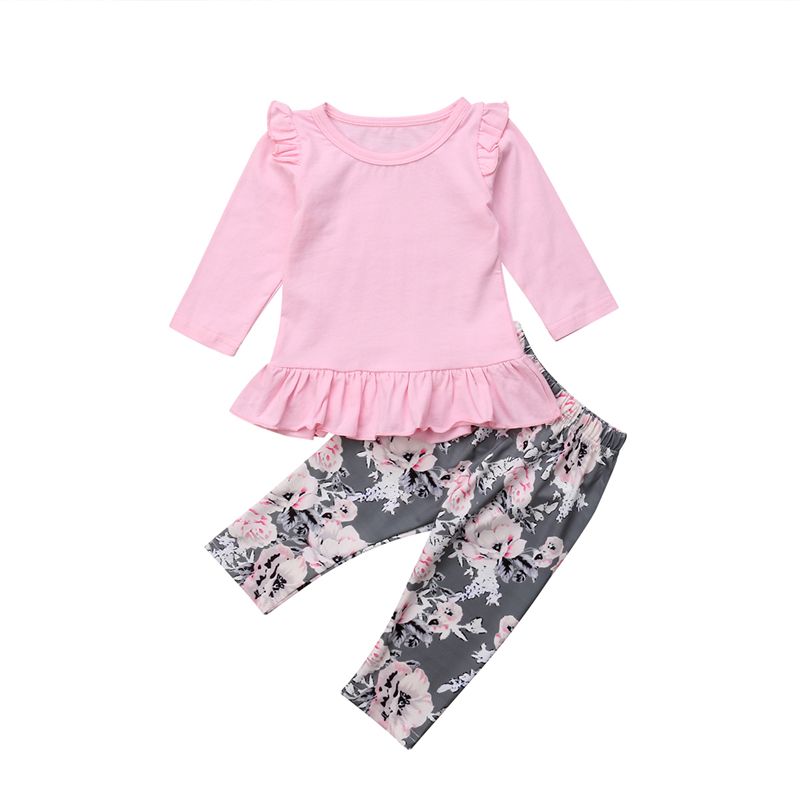 Fashion Girls Clothing Newborn Clothes Set Baby Cotton Ruffles Long Sleeve T Shirt Tops Pants Infant Clothing Set Girls Outfits