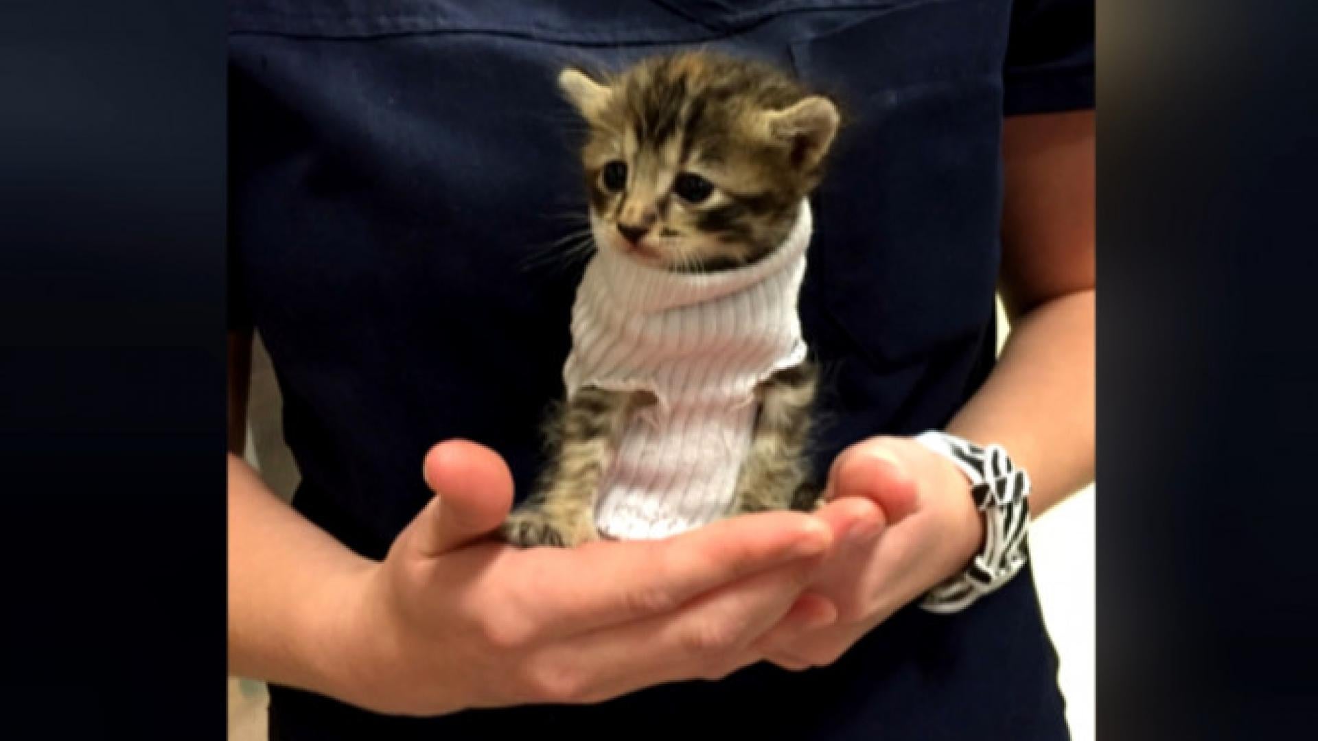 Tiny Kitten Gets Sweater Made From A Sock After Being
