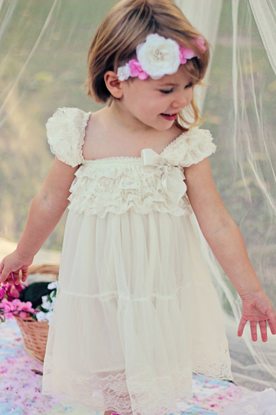 Lace Shabby Chic Vintage Ivory Flower Girl Dress Lace Jr