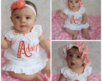 Monogram Girl Dress Newborn Baby Girl Clothes Newborn Girl Take Home Outfit Shabby Chic White Pink Dress New Baby Gift