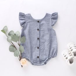 Newborn Baby Striped Romper Infant Baby Romper Kids Designer Boy Girls Striped Fly Sleeve Button Jumpsuit Summer Thin Kids Clothing 06