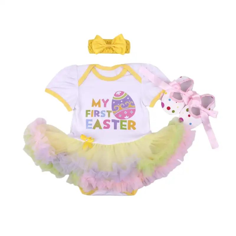 My 1st Easter Baby Girl Clothing Sets Eggs Colorful Tutu Dress Walkers Headband 3pcs Suits Ropa De Nina Girls Newborn Clothes