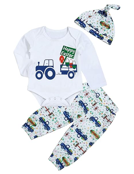 My First Easter Newborn Baby Boy Outfit Happy Easter Romper Top Bunny Egg Car Pant Cute Rabbit Hat Bodysuit Clothes Set