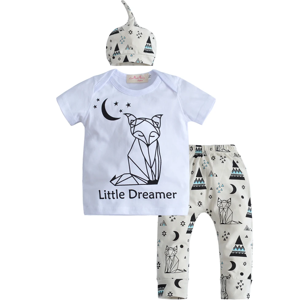 Us 7 45 17 Off Newborn Baby Boys Girls Clothes Set T Shirt Cartoon Fox T Shirt Tops Fox Pants Hat 3pcs Baby Boys Outfits Set In Clothing Sets