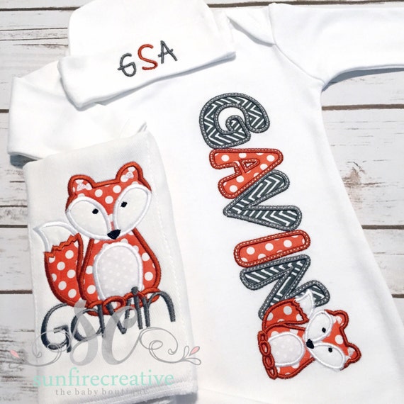 Baby Boy Coming Home Outfit Fox Newborn Sleeper Baby Boy Name Gown Woodland Baby Clothes Unique Baby Shower Gift