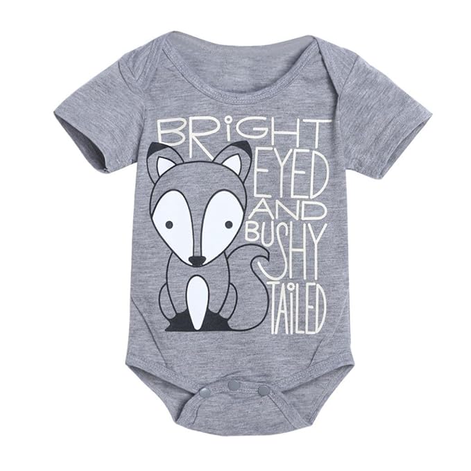 Matoen Tm Newborn Infant Baby Boys Girls Fox Letter Print Romper Jumpsuit Outfits Clothes