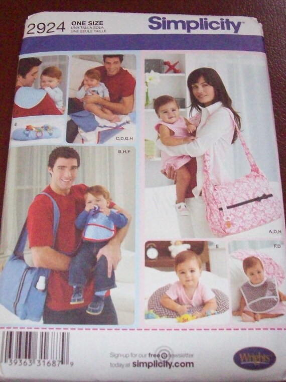 Simplicity Pattern 2924 Essentials For Baby Diaper Bag Bibs Bumpers Burp Clothes Binky Holders Factory Folded And Uncut