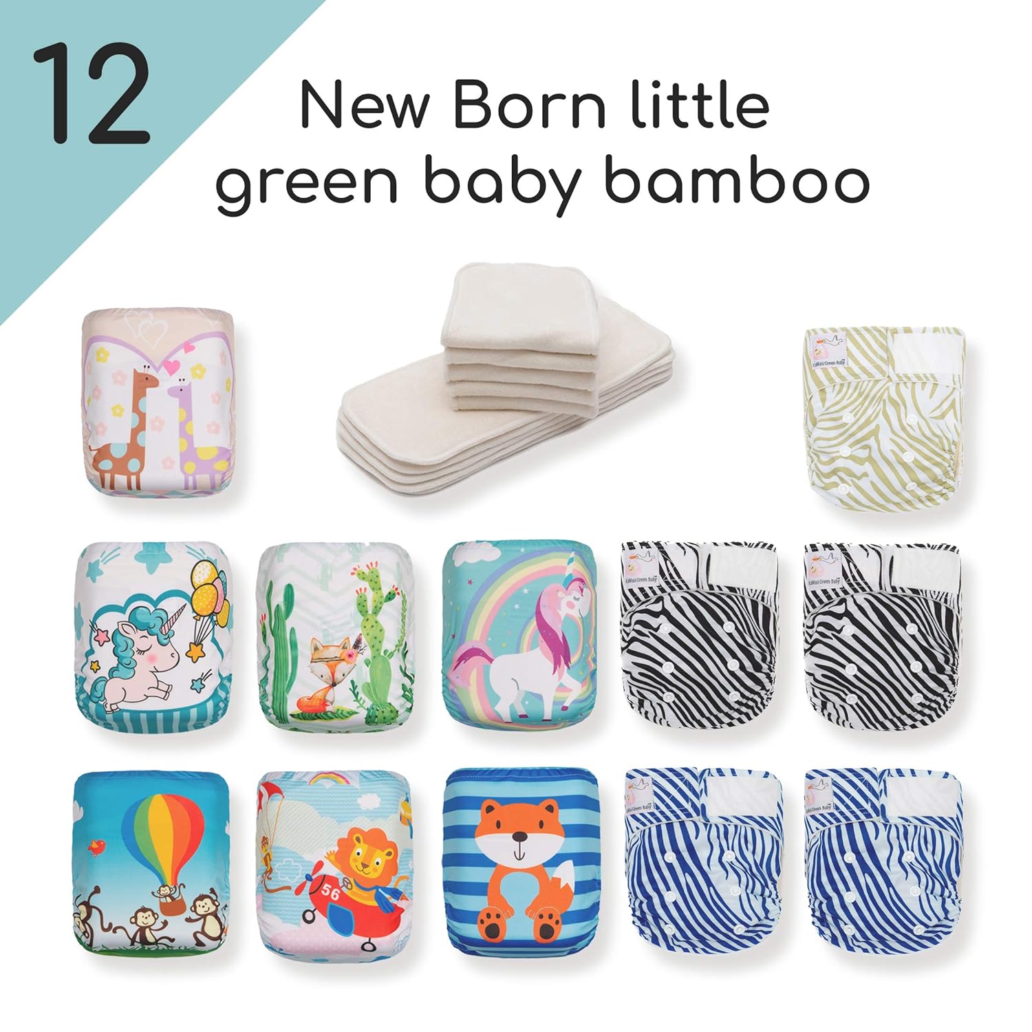 6 Free Bamboo Inserts Cloth Kawaii Baby Super Value Pack 12