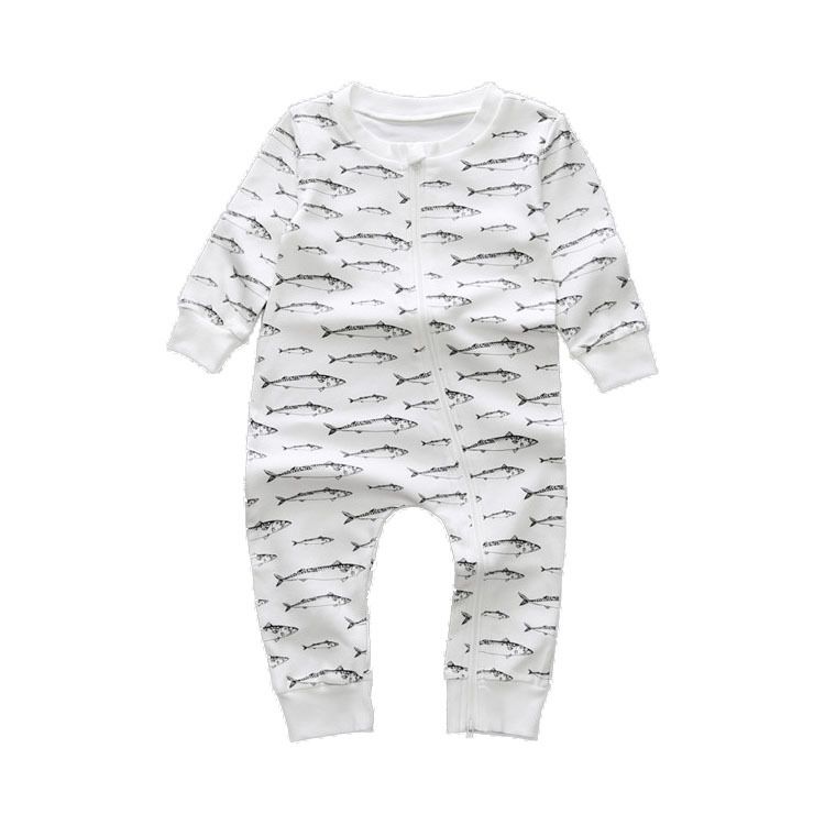 Baby Rompers Infant Girl Newborn Baby Clothes Boy Girl Romper Cute Fish Print Autumn Cotton Zipper Jumpsuit Kids Boys Clothing