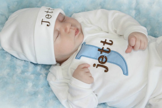 Newborn Boy Clothes Newborn Boy Coming Home Outfit Baby Boy Gift Newborn Boy Outfit Monogrammed Baby Boy Outfit Newborn Hat Newborn Gift