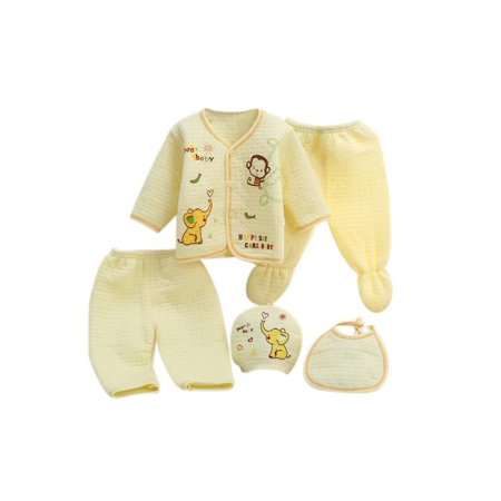 Vicooda Newborn Baby 5pcs Cotton Hat Bib Pajamas Suit Pants Clothing Set Essentials Bundle Caring Gift 0 3 Months