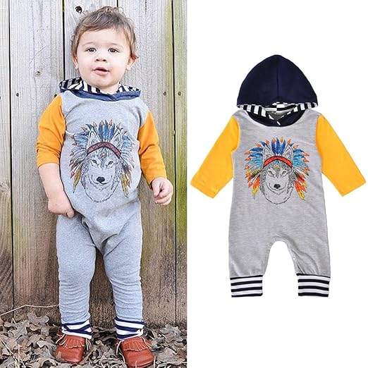 2019 Baby Clothes Sets Fashion Spring Autumn Newborn Baby Boys Girls Indian Wolf Hoodie Romper Jumpsuit Outfits Clothes Kids Children Clothing From