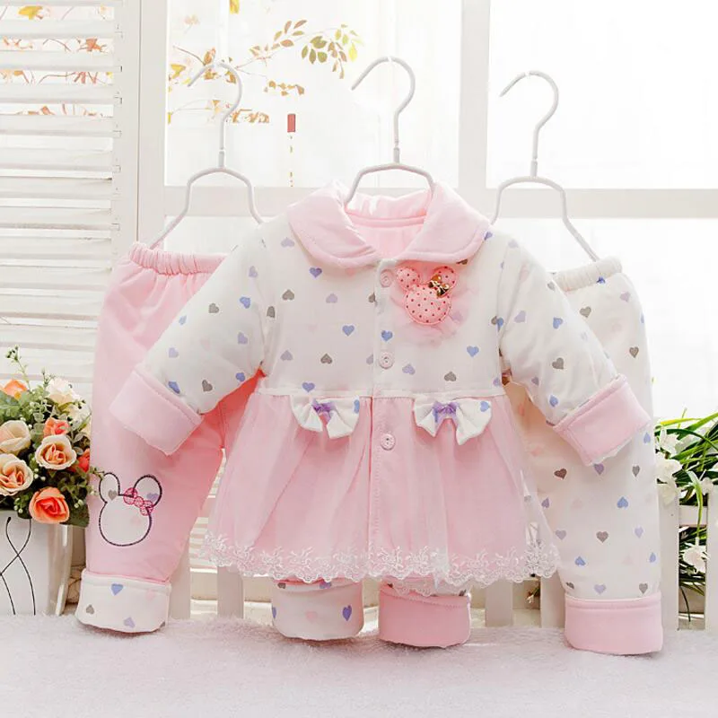 Hot Sale Baby Girls Clothes Winter Baby Set Cotton Lace