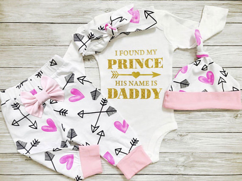 Newborn Girl Coming Home Outfit Baby Girl Clothes Winter Daddy S Girl Outfit Newborn Girl Coming Home Set I Found My Prince