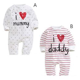Long Sleeve I Love Daddy Mummy Print Stripped Baby Rompers
