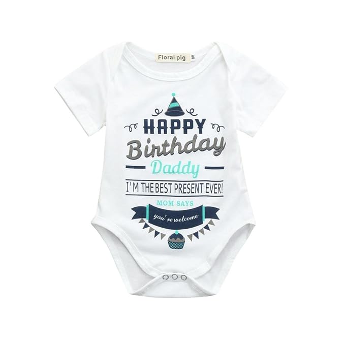 Staron Newborn Baby Boys Girls Romper Happy Birthday Summer Jumpsuit Outfits Clothes