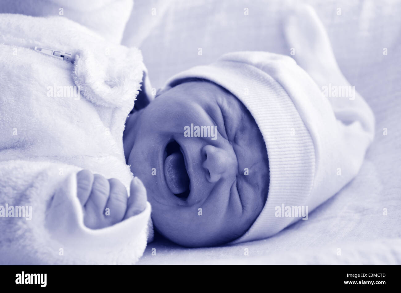 Newborn Baby 1 Week Old With Warm Clothes Screaming Bw