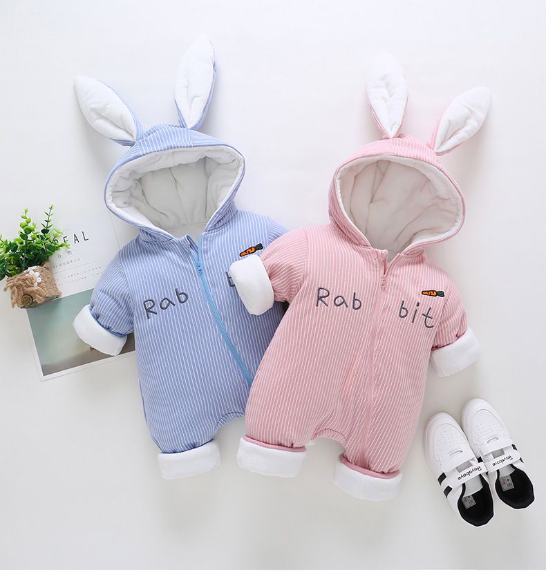 2019 Cute Bunny Fleece Velvet Baby Newborn Warm Clothes Snow Jumpsuit Infant Clothing Winter Baby Girls Boys Rompers From Angel 1314 21 73