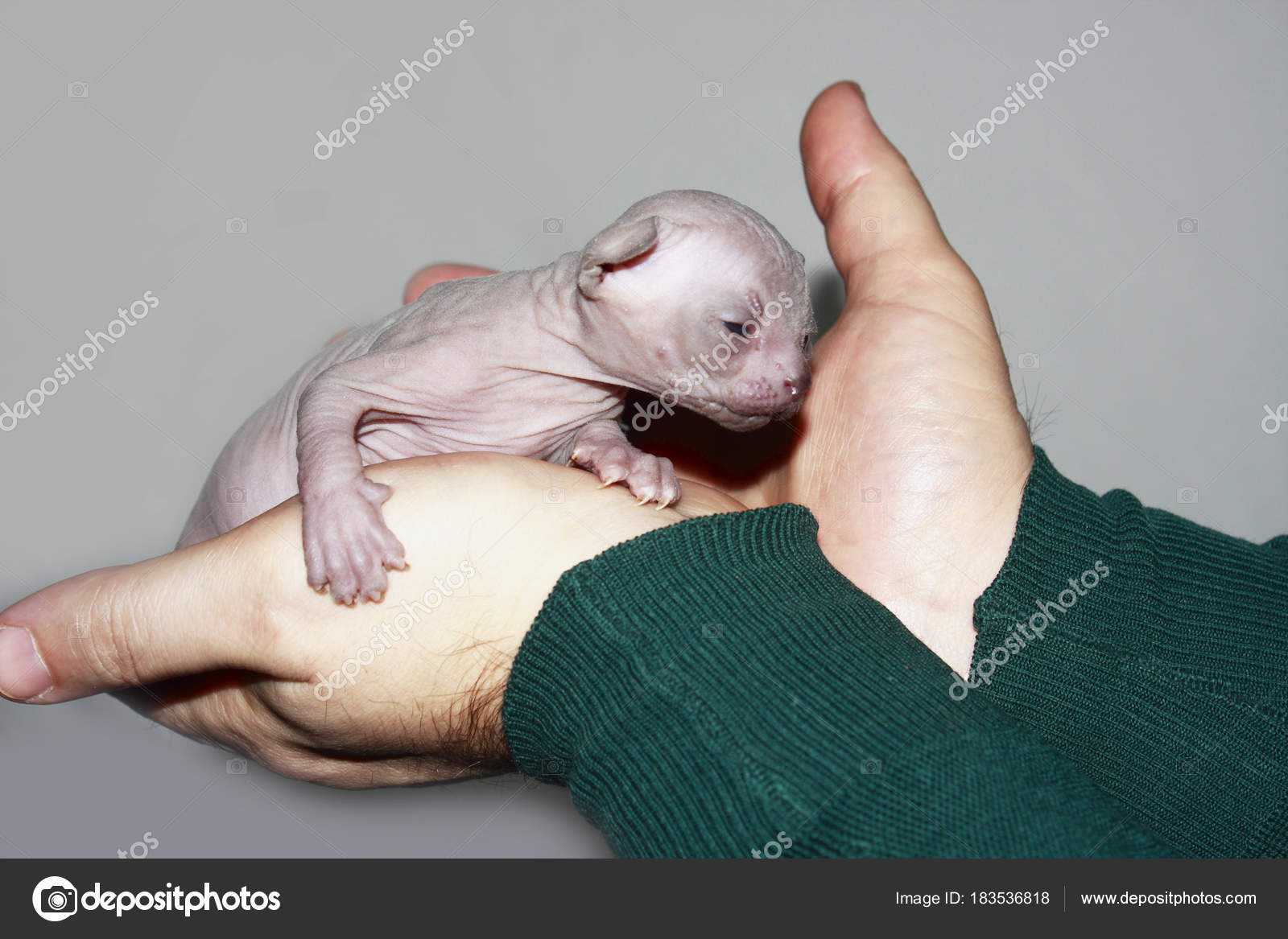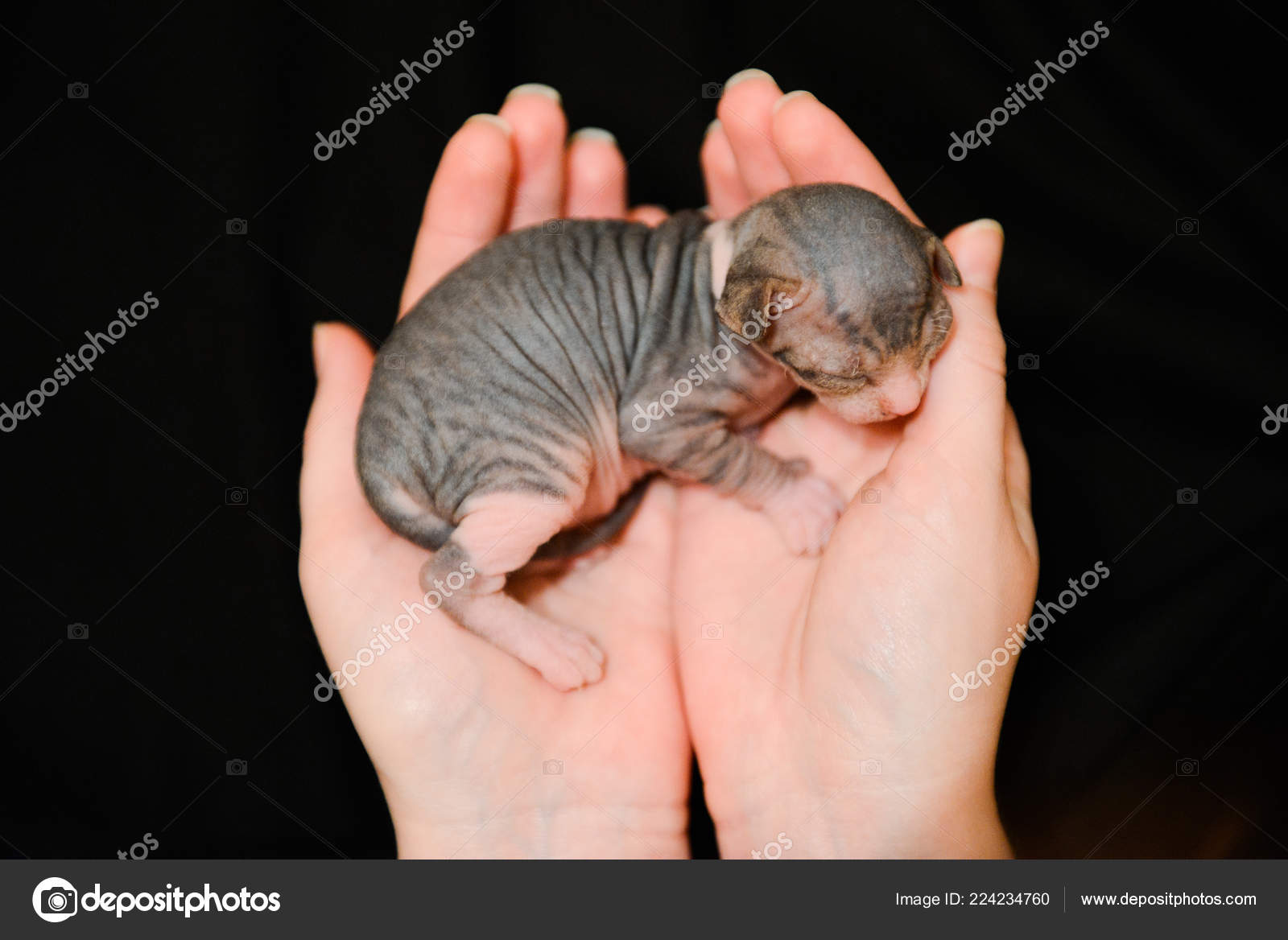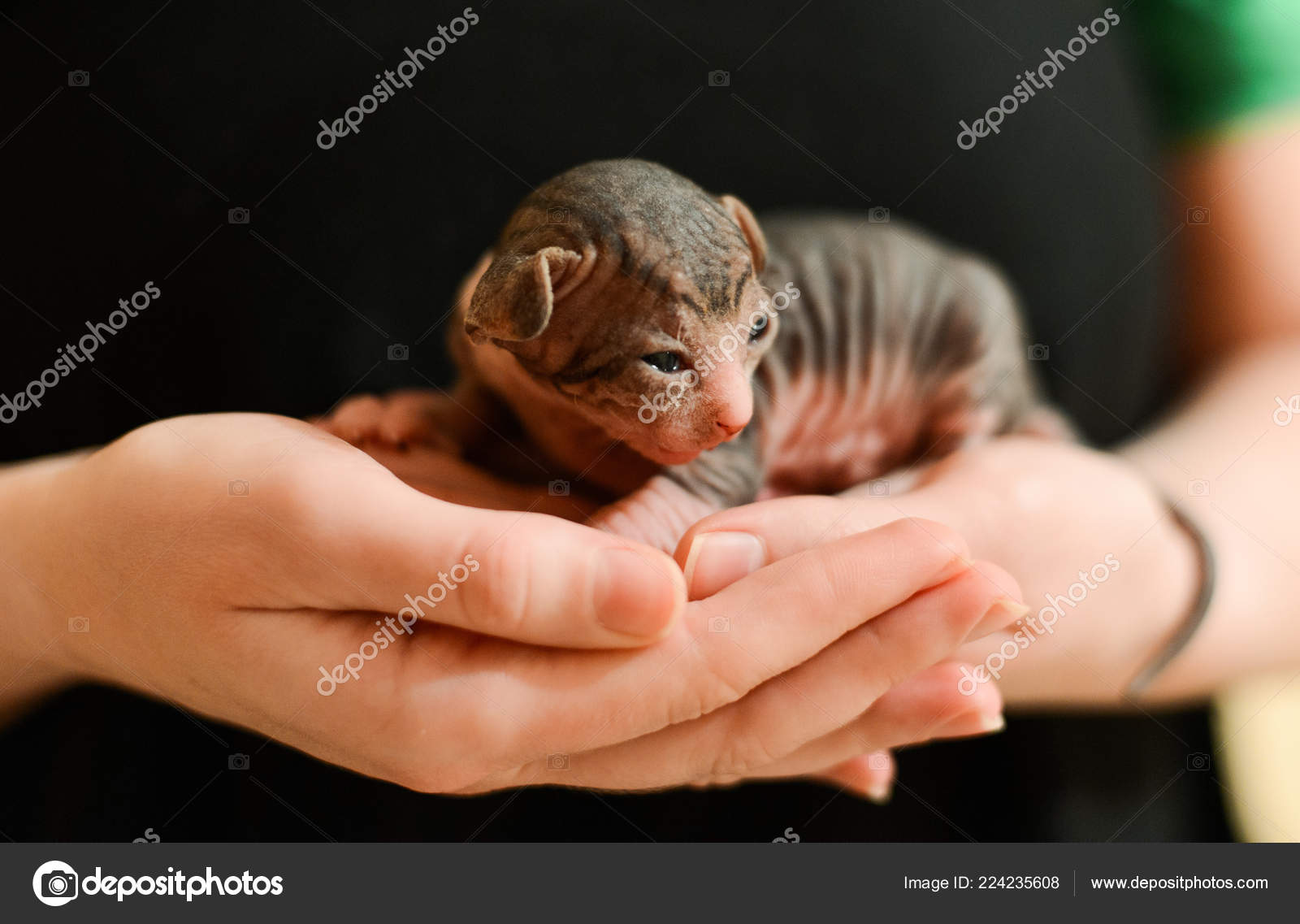 Lovely Newborn Kittens Sphynx Little Bald Cats In The Hands