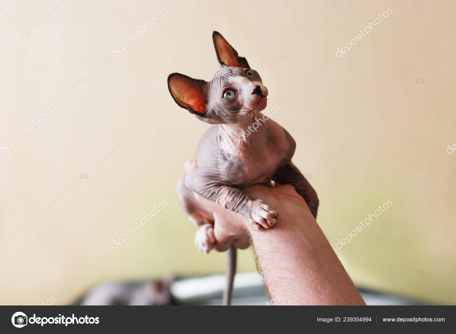 Newborn Kittens Sphynx Little Bald Cats In The Hands Of A Man