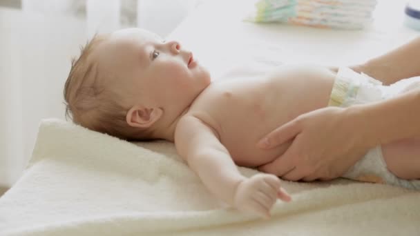 Cute 3 Months Old Baby Boy Lying On Changing Table In Diapers