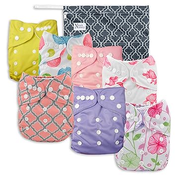 Babygoal Baby Cloth Diapers For Girls Reusable Adjustable One Size Pocket Nappy 6pcs Diapers 6pcs Microfiber Inserts One Wet Bag 6fg03