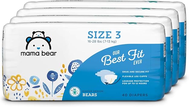 Amazon Brand Mama Bear Best Fit Diapers Size 3 160 Count Bears Print 4 Packs Of 40 Packaging May Vary