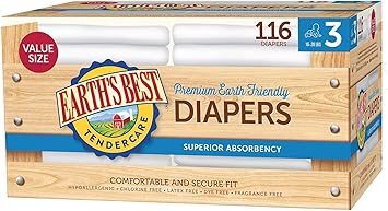 Earth S Best Tendercare Chlorine Free Disposable Baby Diapers Size 3 16 28 Lbs 116 Count