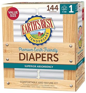 Earth S Best Tendercare Chlorine Free Disposable Baby Diapers 8 14 Lbs Size 1 144 Count