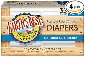 Earth S Best Tendercare Chlorine Free Disposable Baby Diapers Size 3 16 28 Lbs 35 Count Pack Of 4