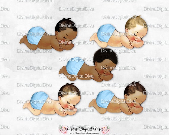 Sleeping Baby Boy Light Blue Diaper Pants 3 Skin Tones Clipart Instant Download