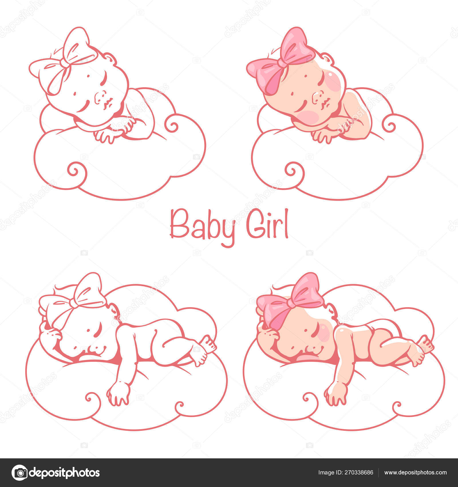 Newborn Baby Girls Sleeping On White Cloud Stock Vector