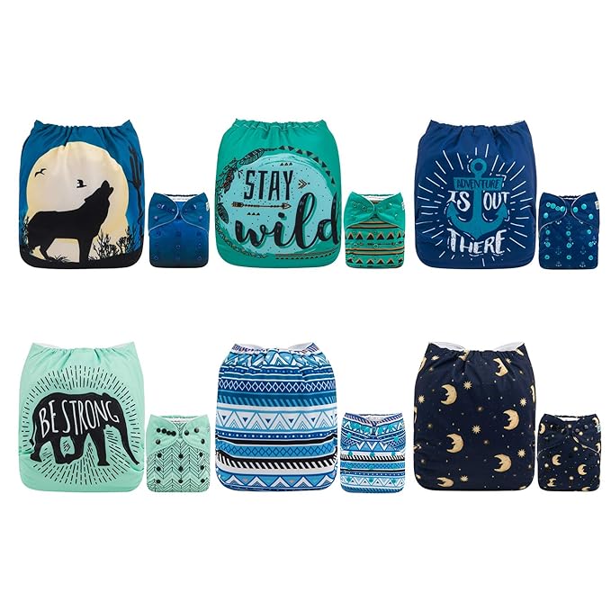 Alvababy Baby Cloth Diapers One Size Adjustable Washable Reusable For Baby Girls And Boys 6 Pack With 12 Inserts