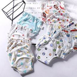 Reusable Cotton Baby Boy Girl Cloth Diapers Cover Newborn Washable Potty Training Pants 6 Layer Cartoon Print Kid Diaper