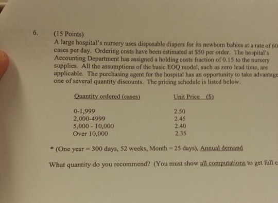 Solved 6 15 Points A Large Hospital S Nursery Uses Dis