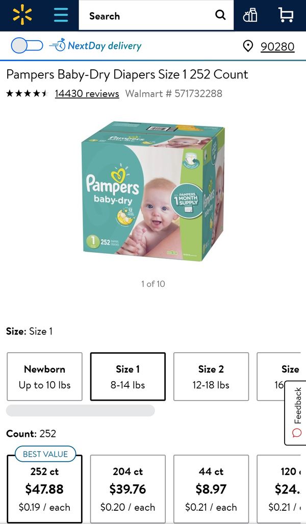 Pampers Swaddlers Diapers Choose Your Size Sam S Club