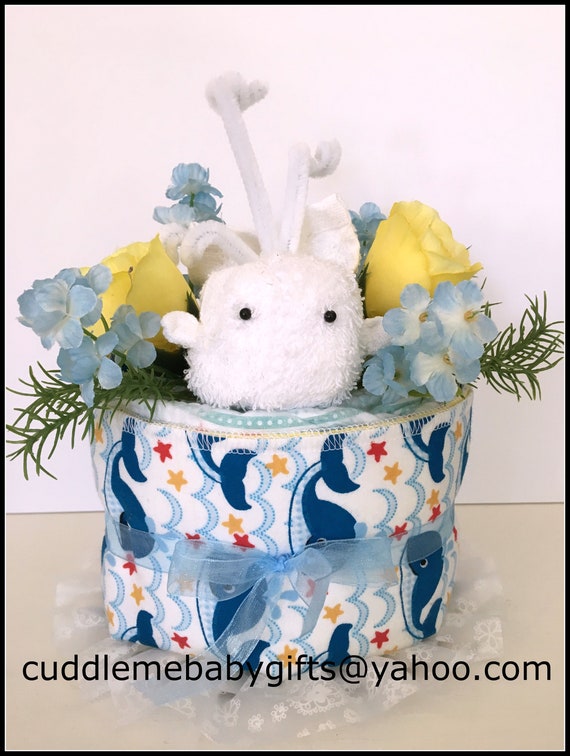 Diaper Cake Centerpiece Whale Baby Shower Decorations Baby Boy Shower Centerpiece Baby Shower Favors Whale Favors