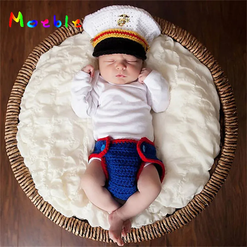 Us 8 33 42 Off Latest Crochet Newborn Boys Navy Costume Photo Prop Knitted Baby Hat And Diaper Set Photography Props Infant Photo Shoot Clothes In