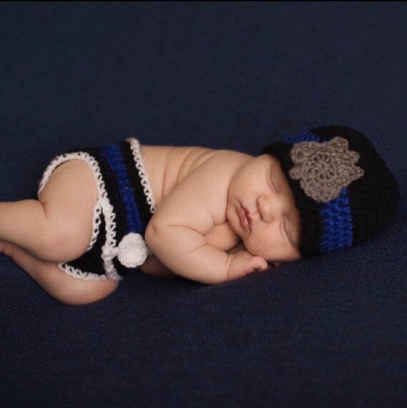 Police Badge Hat Diaper Cover Crochet Black Blue Pink Newborn Baby Girl Photo Prop First Photo Shoot Baby Shower Gift